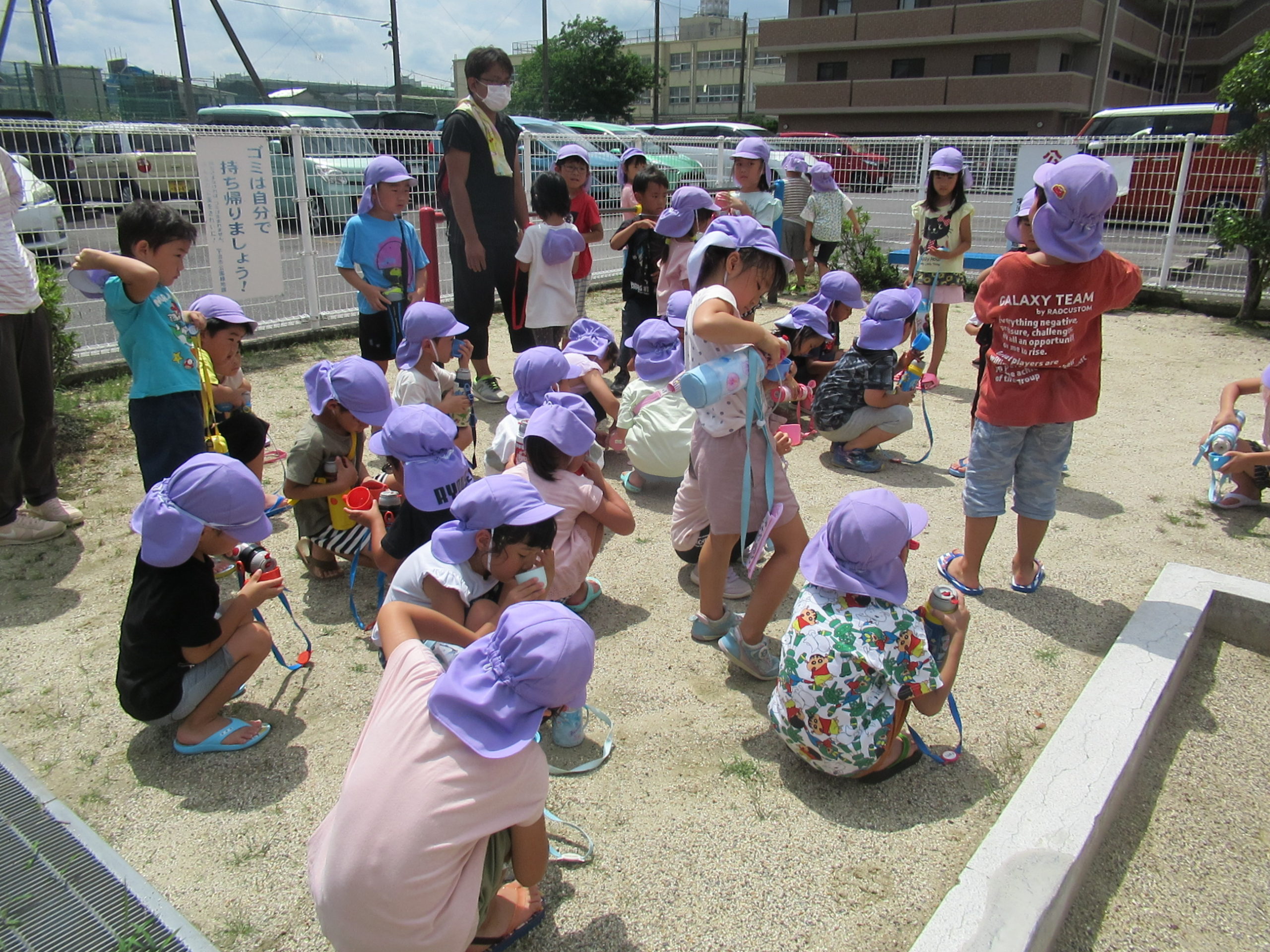 8月に予定をしているお泊り保育ではビーチサンダルを履いて活動をするのですが普段履き慣れていないこともあり練習も兼ねてお散歩に出掛けてみました。