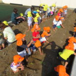 きょうはたんぽぽ組・ひまわり組のお友だちが芋掘りを楽しみました。