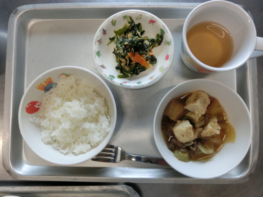 2026.04.10 給食 給食4月2日(木) 幼児食 (ごはん・すき焼き風煮・ほうれん草のツナサラダ) 乳児食(ごはん・すき焼き風煮・ほうれん草のツナサラダ) 完了期(刻み食)(ごはん・すき焼き風煮・ほうれん草のツナサラダ) 前の記事へ 次の記事へ 一覧へ戻る
