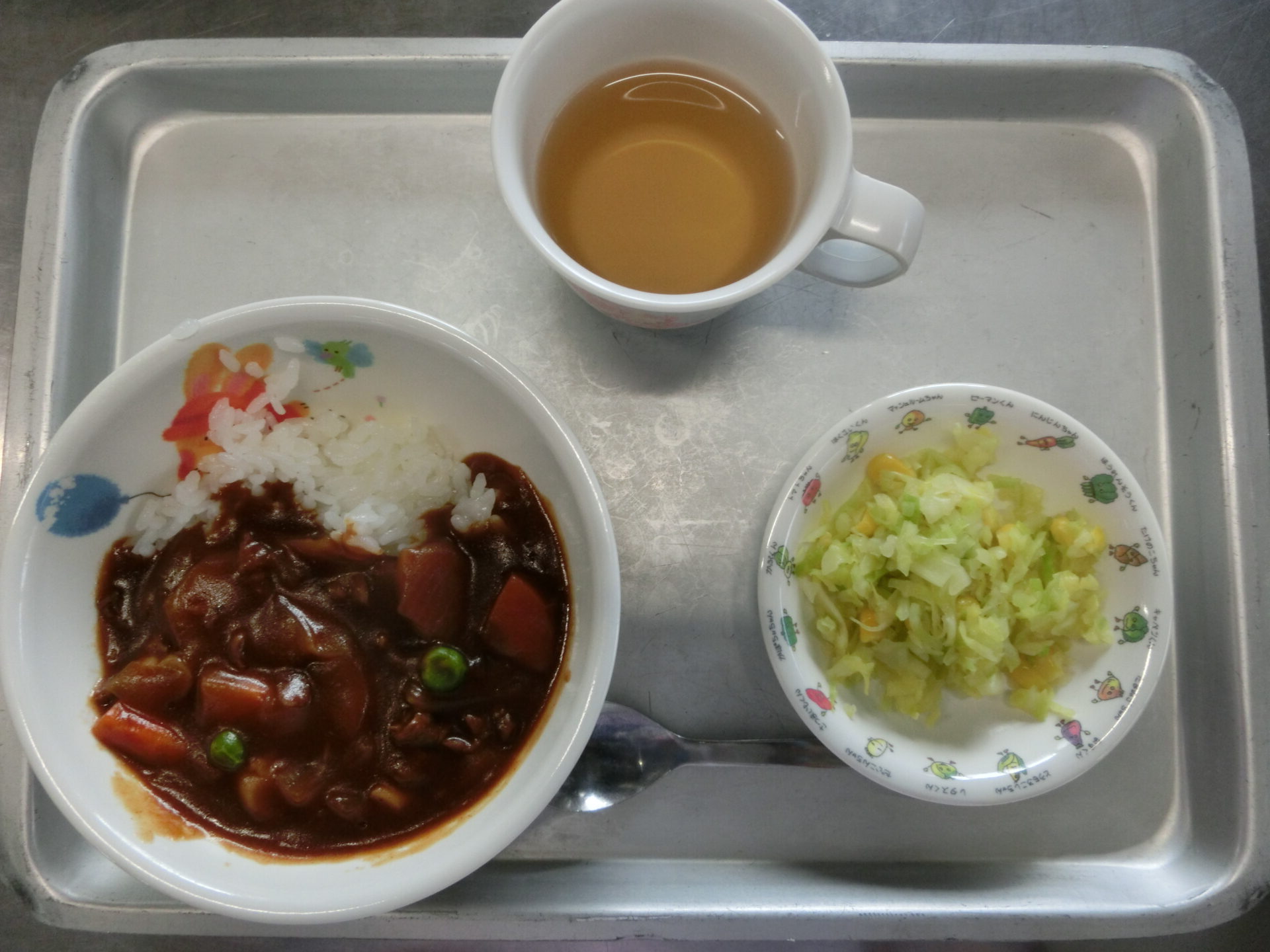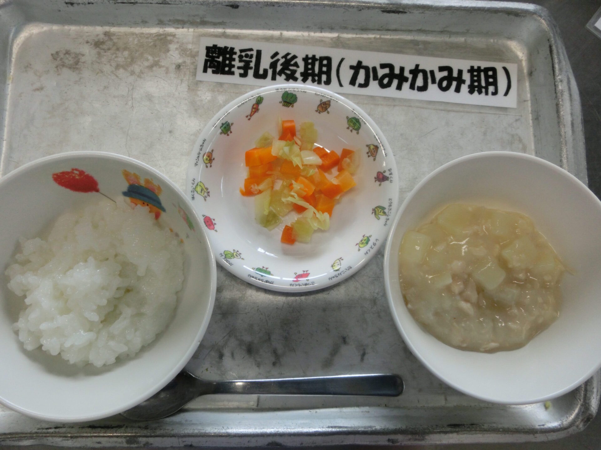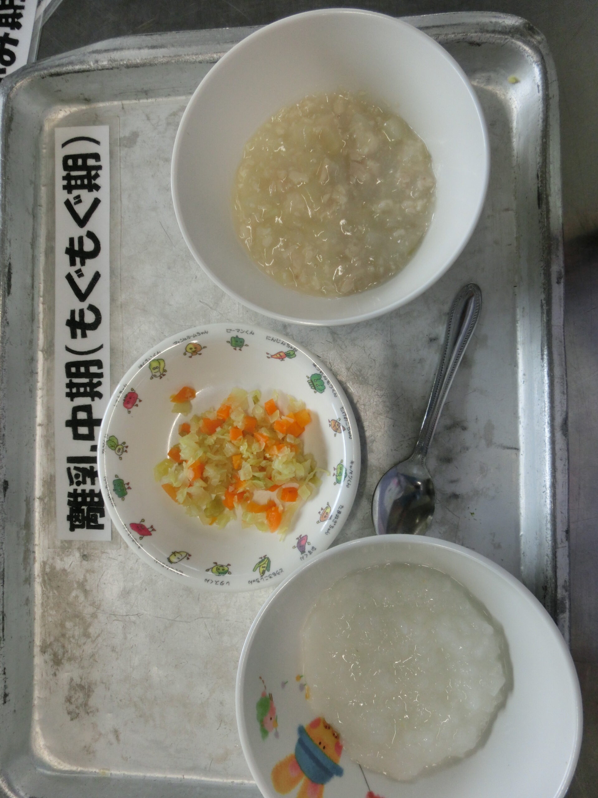 2026.04.15 給食 4月14日(火) 10倍粥・人参・玉葱・キャベツ 7倍粥・ささみと野菜のミルク煮 キャベツと人参お浸し 軟飯・ささみと野菜のミルク煮 キャベツと人参のお浸し 乳児食 ハヤシライス・コーンサラダ 幼児食 ハヤシライス・コーンサラダ 前の記事へ 一覧へ戻る
