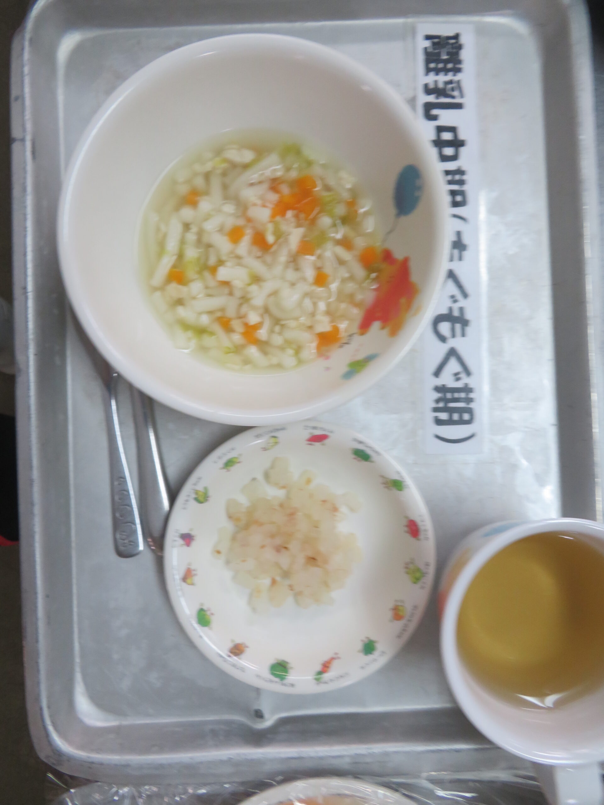 2026.04.23 給食 4月23日(木) 10倍粥・人参・白菜・大根 くたくた煮(うどん)・大根のおかか和え 柔らか煮(うどん)・大根のおかか和え 乳児食 若布うどん・ゆかり和え 幼児食 若布うどん・ゆかり和え 前の記事へ 一覧へ戻る