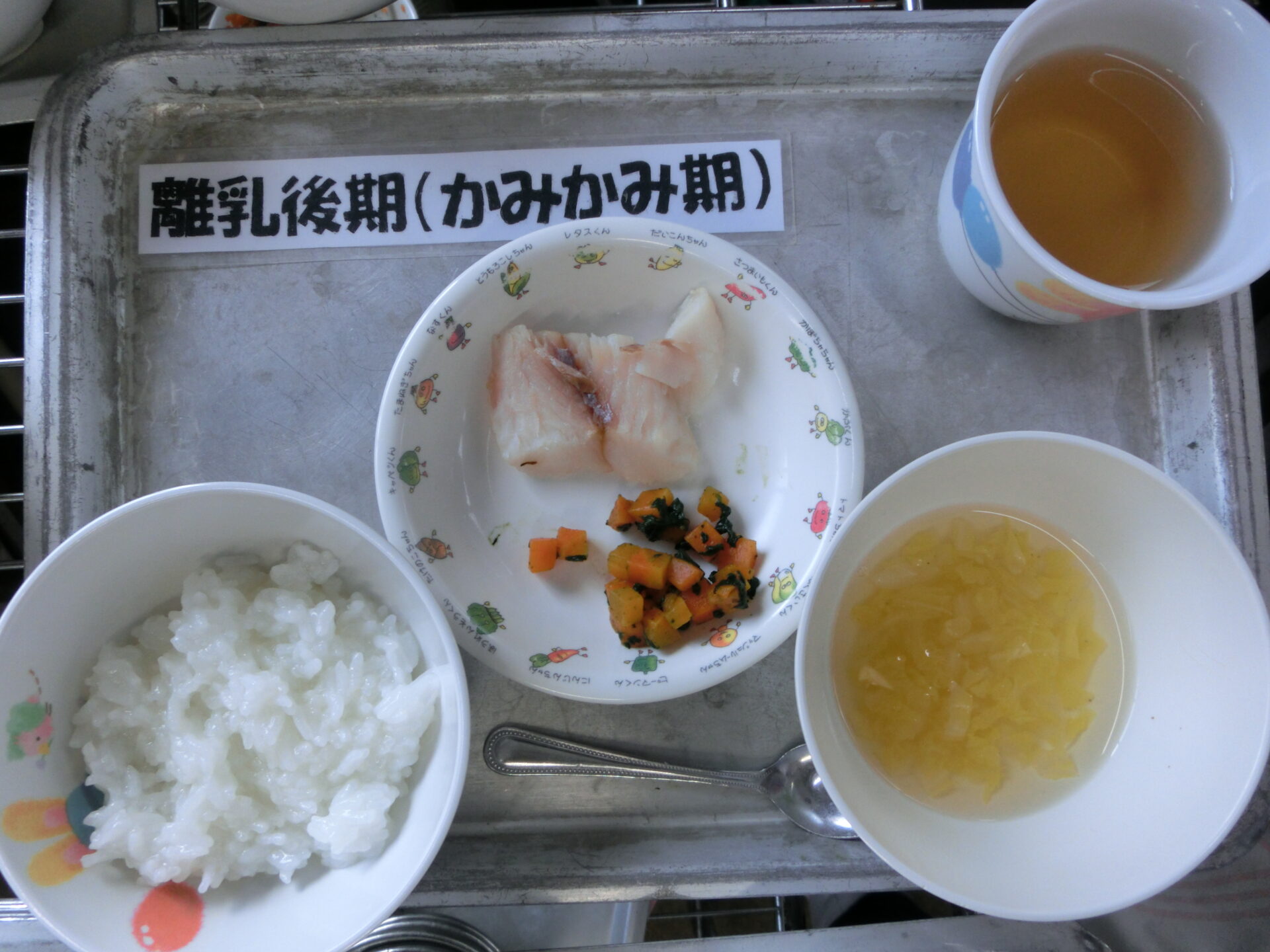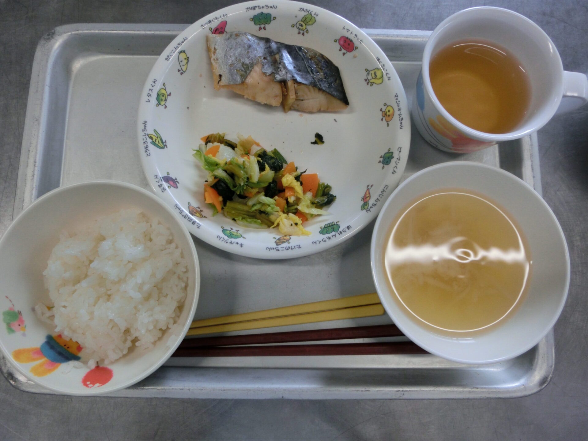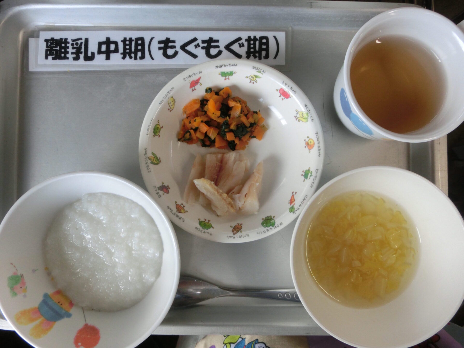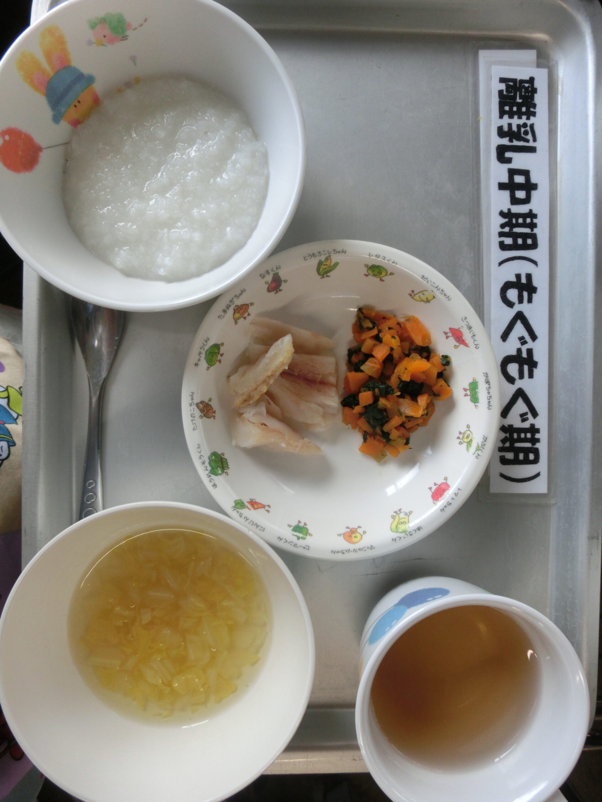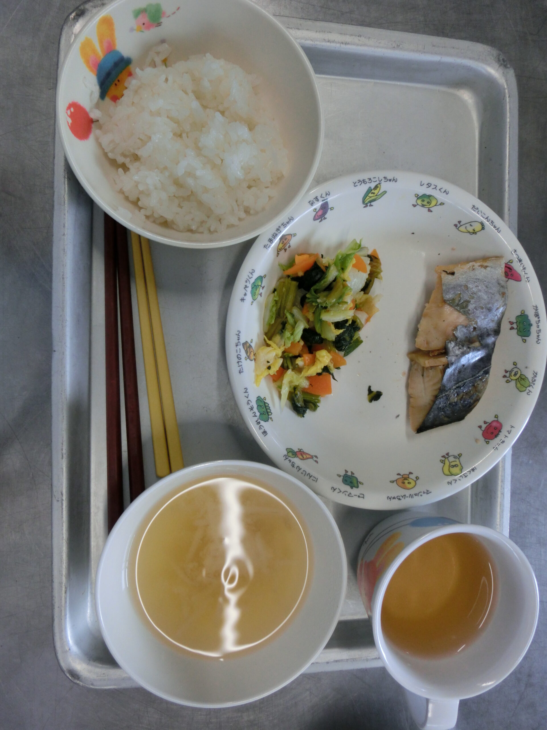 2026.04.27 給食 4月27日(月) 10倍粥・人参・ほうれん草・白菜 7倍粥・白身魚の蒸し焼き・ほうれん草のお浸し・白菜のすまし汁 軟飯・白身魚の蒸し焼き・ほうれん草のお浸し・白菜のすまし汁 ご飯・さわらの煮つけ・お浸し・もやしの味噌汁 ご飯・さわらの煮つけ・お浸し・もやしの味噌汁 前の記事へ 一覧へ戻る